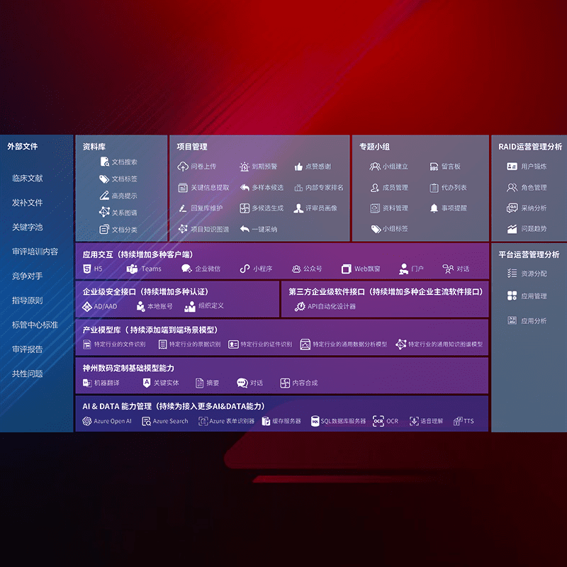 医疗器械产品上市前,,,,要熟悉严格与繁复评审标准,,,,整理分析监管机构指导文件中的海量信息。。企业急需一个智能化解决方案,,提升知识管理效率,,,提高评审通过率,,以提升其市场竞争力。。。